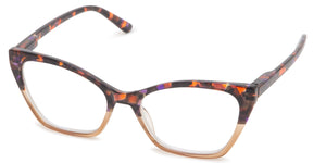 Discover a world of style and sophistication with our chic cat-eye design that adds an alluring touch to your everyday look. The unique two-tone front design sets the Sheila reading glasses apart from the ordinary. Express your individuality with a blend of captivating colors that add depth and character to your eyewear. Choose either tortoise/brown or two-tone turquoise.