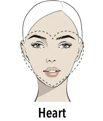 Heart-shaped faces do well with wider glasses that balance the width at the top of the head. You should consider trying some fashionable winged-out readers or a modified wayfarer shape. Also, if you want any detailing, make sure it's at the bottom of your frames.