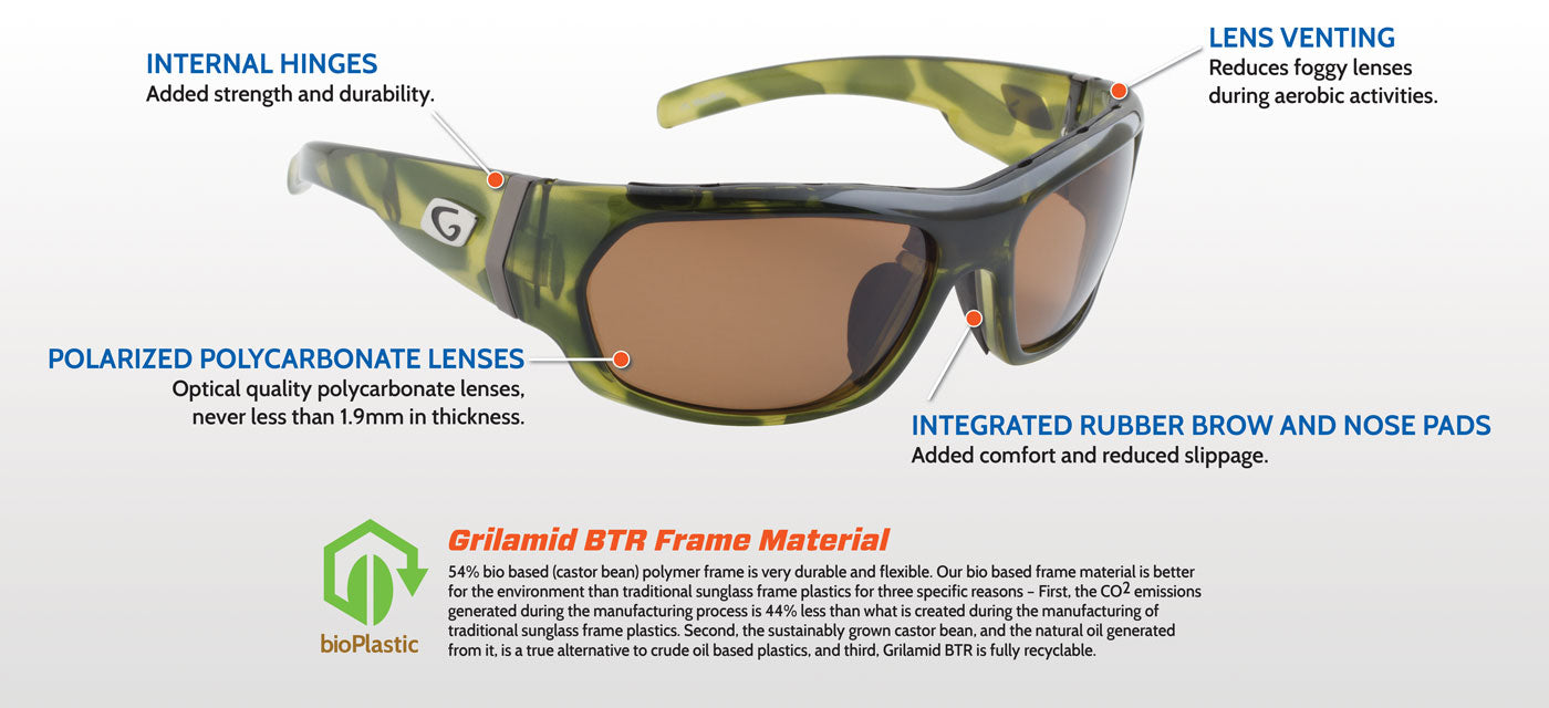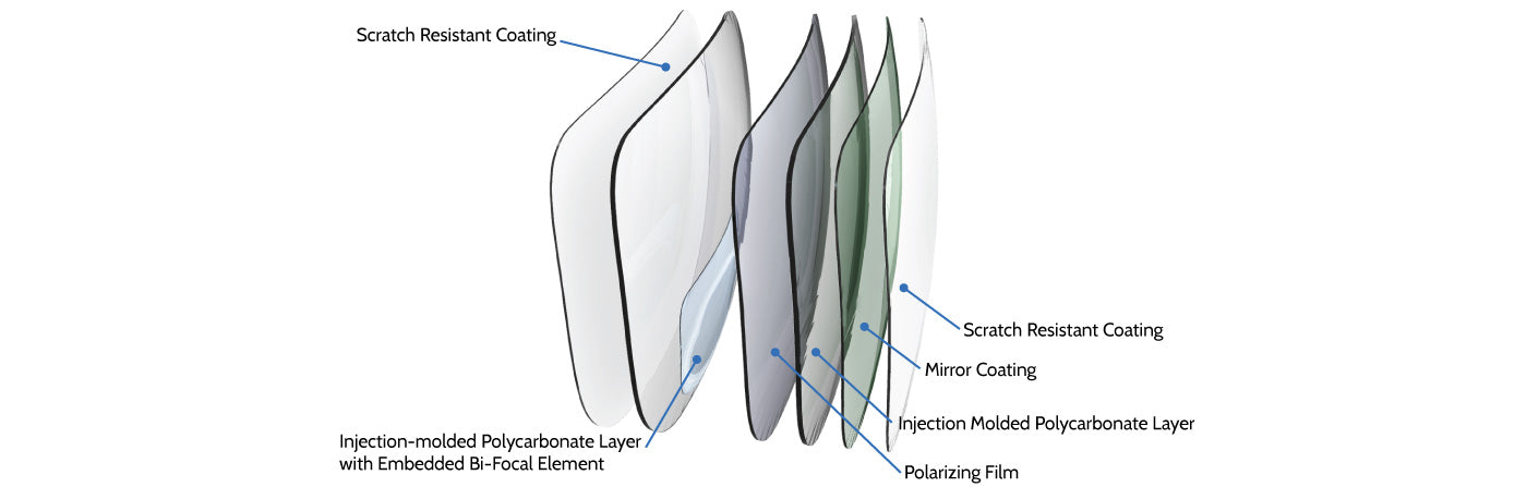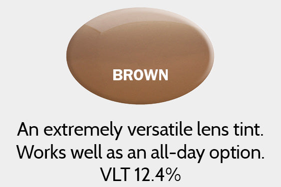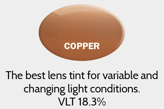 Our lens-tint technology centers around visible light transmission, or VLT (the amount of light reaching the eye after passing through the lens), and is measured as a percentage. “All purpose” sunglass lenses typically range in VLT from 15-25%, sunglasses designed for high glare situations, such as crossing a glacier, have a range in VLT from 4-10%. Water sport sunglasses generally have a VLT between 10-20%.