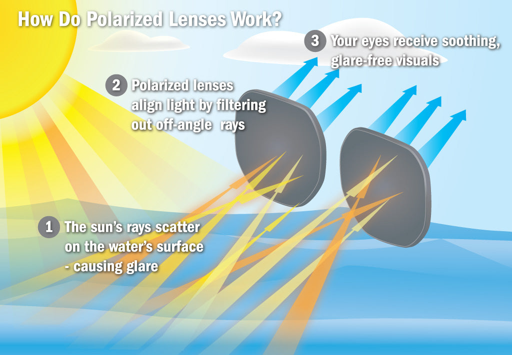 Polarized lenses offer special eye protection against the sun’s harmful rays by filtering out off-angle rays of light. This means that they block horizontal rays of light, which are often reflected at your eyes by water, glass, and other reflective surfaces around you. In addition to offering enhanced protection, this improves your clarity of vision and makes it much easier to focus on what you are doing. In fact, Fisherman Eyewear was the first brand to incorporate Polaroid film into our sunglass lenses to achieve polarized sunglasses in 1974!